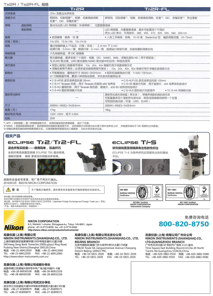 產(chǎn)品名稱: 尼康 Nikon Ts2R 倒置顯微鏡