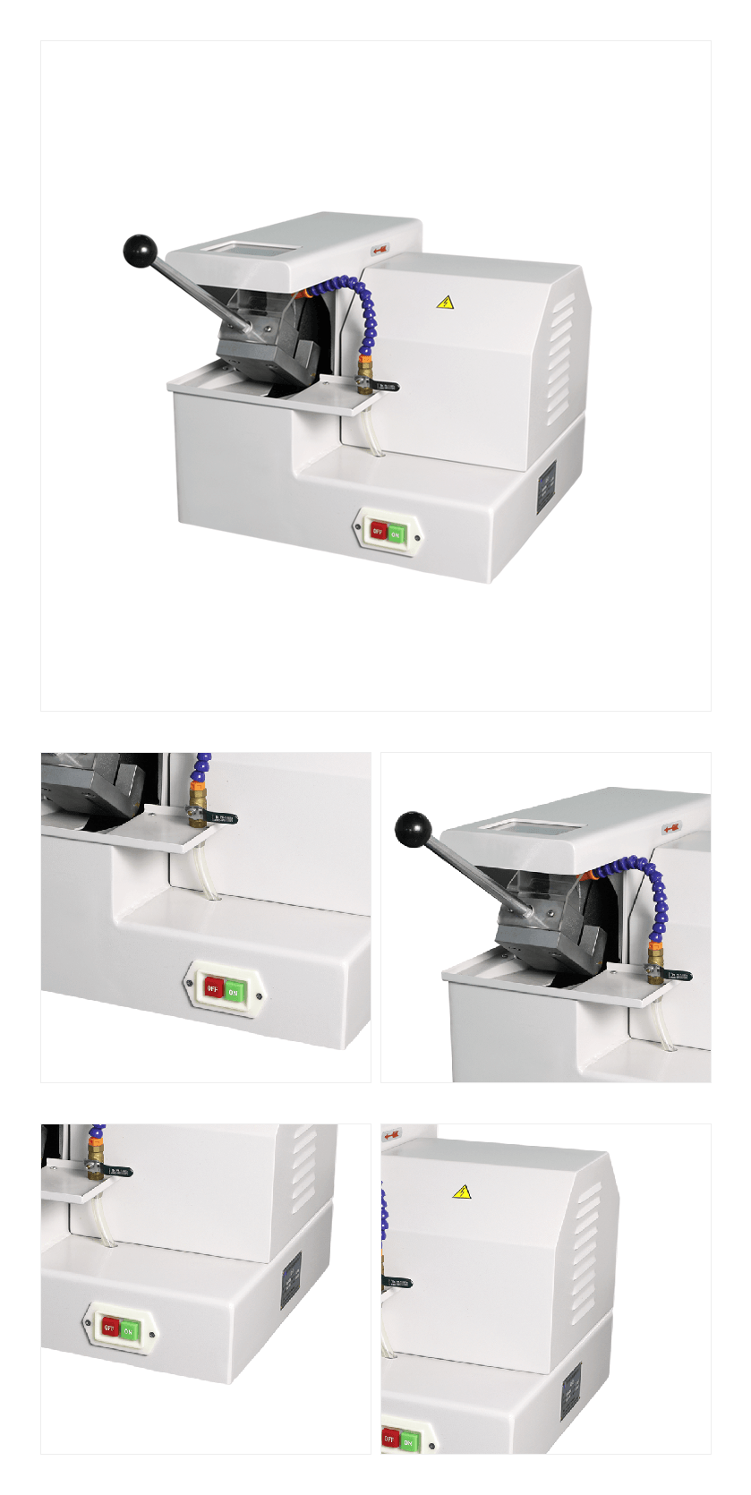 本機(jī)利用高速旋轉(zhuǎn)的薄片切割片來截取金相試樣,適宜切割較硬的金屬材料;本機(jī)有冷卻裝置,用來帶走切割時所產(chǎn)生的熱量,避免切割過程中試樣過熱,而改變組織。